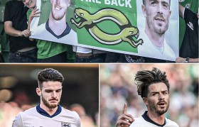9月8日讯英格兰客场同爱尔兰的欧国联比赛,半场格拉利什和赖斯破门,英格兰2-0领先。爱尔兰现场球迷嘲...