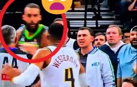 11月3日讯 昨天森林狼和掘金的比赛,戈贝尔和掘金球员布劳恩发生冲突。随后威少上前与戈贝尔对峙,戈贝...