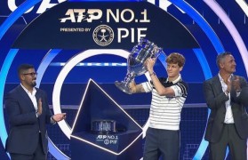 11月12日讯 在周一晚间的ATP都灵年终总决赛上,辛纳领取ATP年终世界排名第一的奖杯,这位意大利...