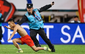 11月28日讯 在点评国足比赛冲场球迷被处罚时,浙江媒体中国蓝新闻认为,冲场球迷是给中国足球“使绊子...