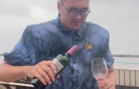 要被吹傻了!张兆旭台风天喝红酒:被迫停工休息1天 大家还好吗?