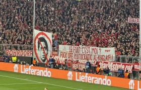 11月28日讯在昨天凌晨欧冠比赛中,拜仁1-0巴黎,比赛中拜仁球迷拉出横幅攻击了巴黎主席纳赛尔。就此...