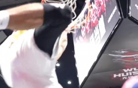 经典瞬间!库里做晚安安 身后的安东尼兴奋跳起成为背景