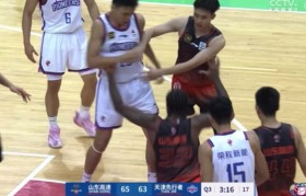 10月4日讯CBA季前赛辽宁葫芦岛赛区,山东对阵天津。比赛进行到第三节,山东外援克里斯和时德帅发生冲...