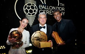 10月31日讯2024年金球奖颁奖典礼结束,巴萨球员亚马尔获得科帕奖,邦马蒂获得女足金球奖。《世界体...